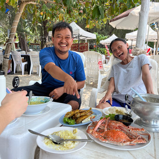 We went to our favorite nearby beach (Hat Yao) with P'Thaksin and P'Kwan (our two Thai staff members who joined the team in January) to help host guests from YWAM Hat Yai and YWAM Chiang Mai as they took a tour of the nearby island. It was awesome to get to serve and connect with our brothers and sisters... AND we had "bpoo soht," fresh crabs which is why they look so happy in that picture! :D